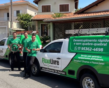 Entupiu? A Desentupidora Fluxo Livre resolve rápido, limpo e sem dor de cabeça. Atendimento ágil, profissionais experientes e equipamentos modernos para acabar com o problema de forma definitiva.
